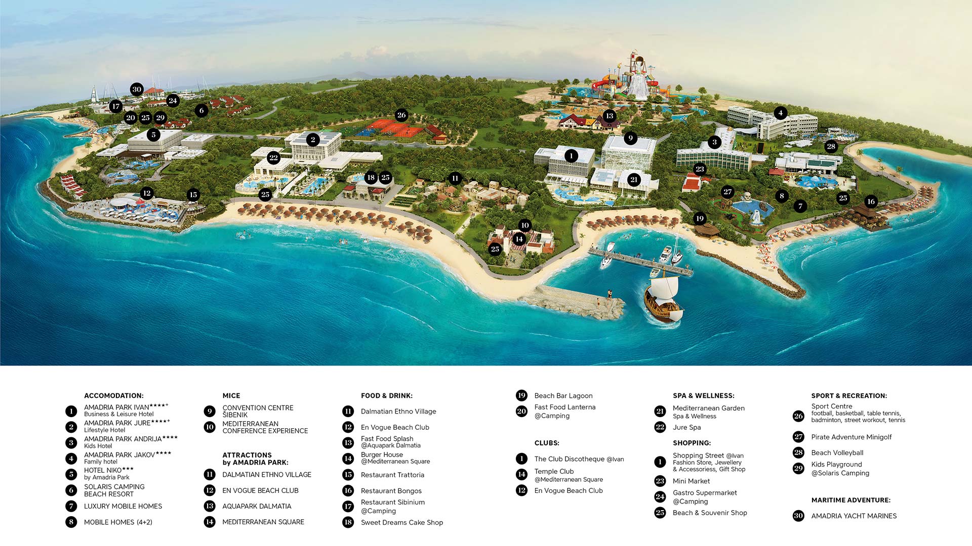 Come fulcro sociale dell’Amadria Park a Šibenik, quest’area unisce le persone dal caffè del mattino alla cena serale. Troverete di tutto, dai pop-up stagionali ai negozi esclusivi, dai bar informali ai ristoranti raffinati, tutto in un unico tratto percorribile a piedi.
